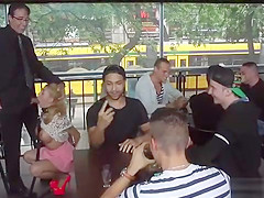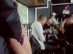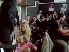 Biggest meatballs blond anal team-fucked in bar