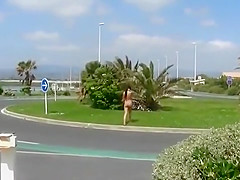 Adela R barefoot walkabout on vacation in Spain