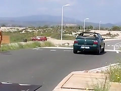 Sexy hitchhiker gets slammed about the roadside