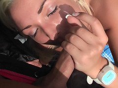 Breana in bitch gives face hole gagging bj in the ou...