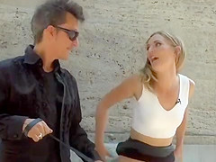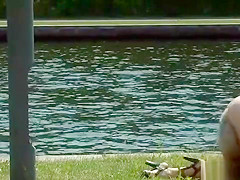 Hotty with plug in the a-hole positions for a lad at a public beach