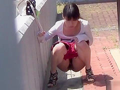 Hotty with plug in the a-hole positions for a lad at a public beach
