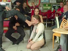 Breasty serf arse caned in the rain