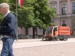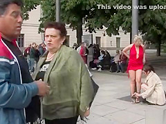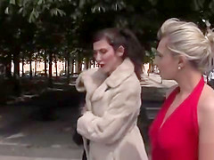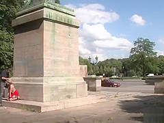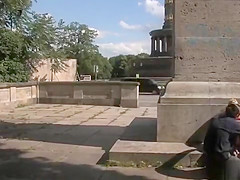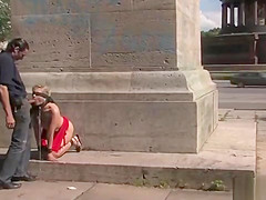 Blindfolded blond engulfing in public