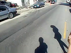 Sexy hitchhiker gets slammed about the roadside
