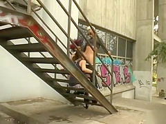 Euro hottie screwed on stairs outdoor