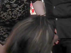 Euro hotty bangs on table in public bar