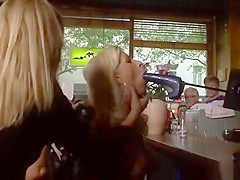 Breasty blondes made crawl in public