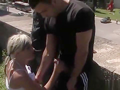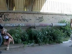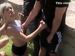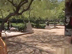 Hotty with plug in the a-hole positions for a lad at a public beach