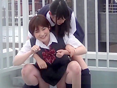 2 sexy girlfriends have sex outdoors