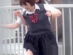 Japanese schoolgirl with bushy cookie peeing outside