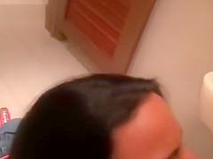 Smokin' sexy lalin girl giving oral job on knees in POV
