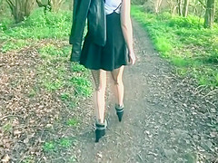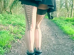 British Wench Wife In French Lace Nylons Stripping Off In The Woods