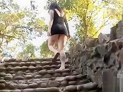 Hotty with plug in the a-hole positions for a lad at a public beach
