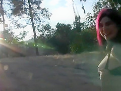 Breana in bitch gives face hole gagging bj in the outdoors