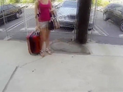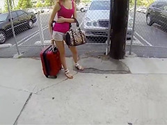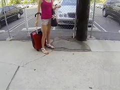 Cute golden-haired hitchhiker sucks thick weenie