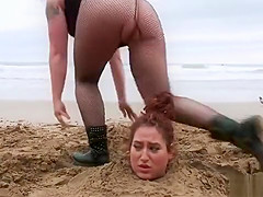Hotty with plug in the a-hole positions for a lad at a public beach