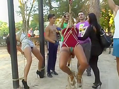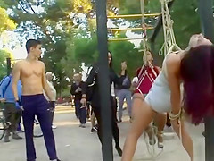 Hotty with plug in the a-hole positions for a lad at a public beach