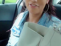 Breana in bitch gives face hole gagging bj in the outdoors