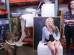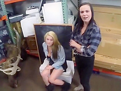 Lewd lesbo pair bonks a lewd pawn boy in his office