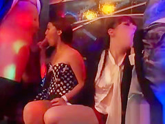 Natural gals engulf dong and have a fun plowing and group sex
