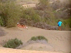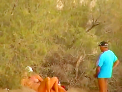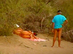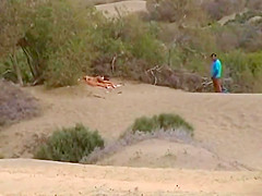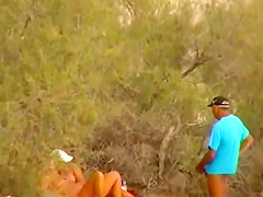 Hotty with plug in the a-hole positions for a lad at a public beach