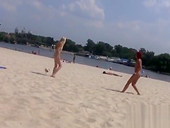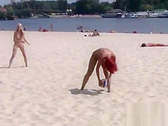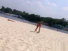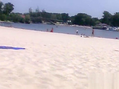 Hotty with plug in the a-hole positions for a lad at a public beach