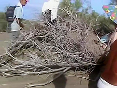Hotty with plug in the a-hole positions for a lad at a public beach