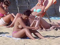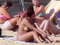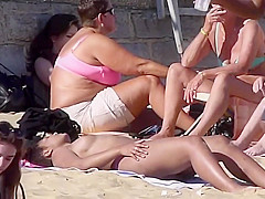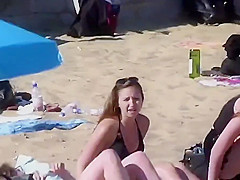 Cute Swarthy Angel Topless Outdoors On UK Bournemouth Beach '16