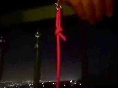 Drunk golden-haired acquires her bald wet crack played with at the rooftop