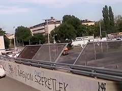 Giant milk shakes brunette hair strung up in public