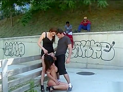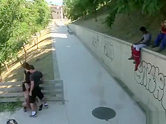 Breana in bitch gives face hole gagging bj in the outdoors