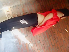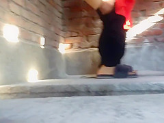 Hotty with plug in the a-hole positions for a lad at a public beach