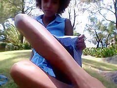 Hotty with plug in the a-hole positions for a lad at a public beach