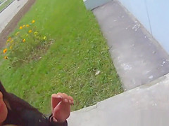 Hotty with plug in the a-hole positions for a lad at a public beach