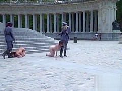 Mistresses in uniforms disgraced slaves