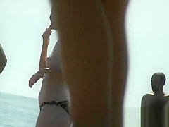 Sexy naked cutie was easily spied by the beach voyeur hunter