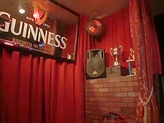 Dark Brown acquires facual cumshots in public pub