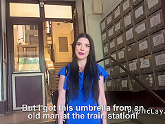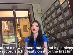 Stud testing his fresh camera when hawt dark brown Euro non-professional passed by him then that guy stopped her and followed her into her apartment where fucking her pov