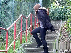 Town center parks bring an unusual view on sexy peeing chicks