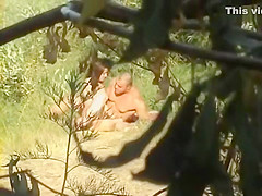 Sexually Excited hottie and her paramour have joy in the grass voyeur secret camera