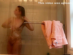 eighteen year old Volleyball player HIDDEN CAMERA glass shower! anew! GREAT ARSE