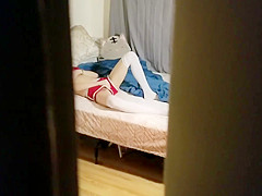 Spying on little step sister during the time that this babe touches herself