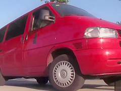 Redhead hard drilled in van in public