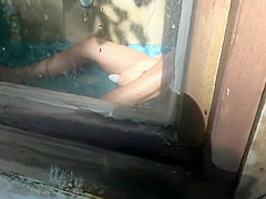 SEXY WIFE CAUGHT MASTURBATING IN JUNGLE TUB THEN ORGASMS FOR CAMERA.