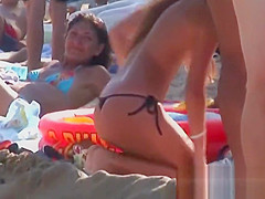 Juvenile topless nubiles on the beach showing natural firm wobblers in public!