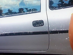 Hotty with plug in the a-hole positions for a lad at a public beach