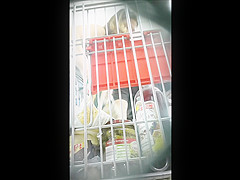 Description: Dziewczyna z mini spódniczką w supermarkecie