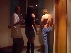 Swank-pass Monica Mattos sucks and bonks thick knob whilst being watched