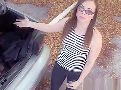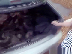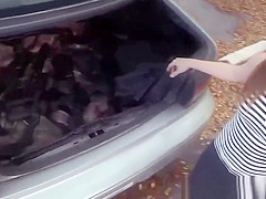 Sexy hitchhiker gets slammed about the roadside